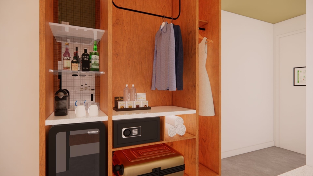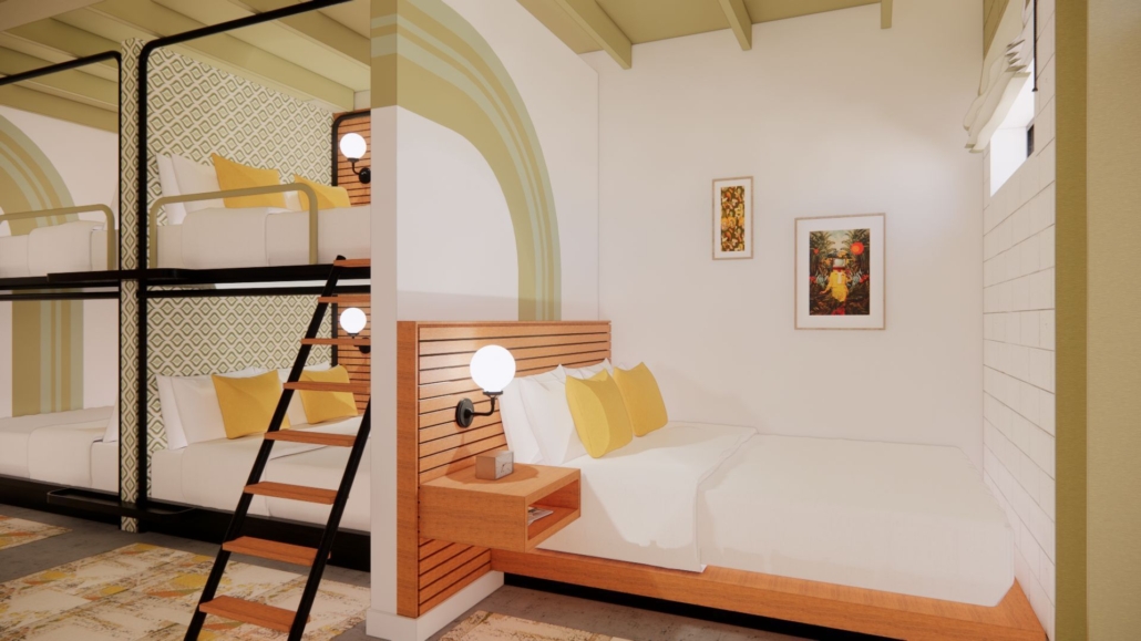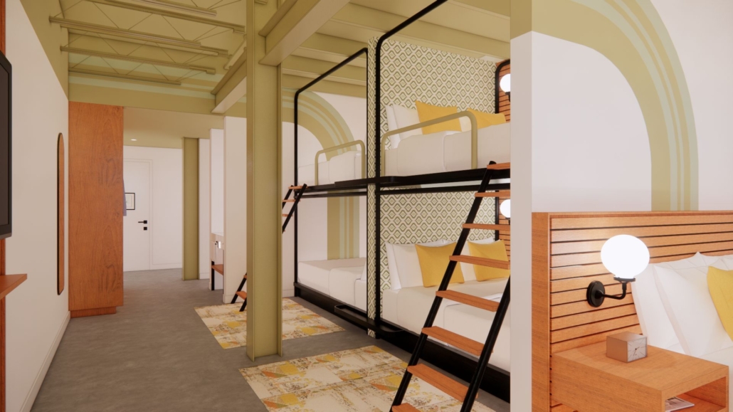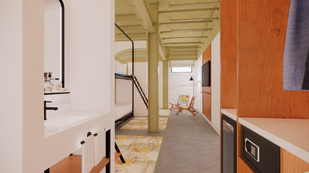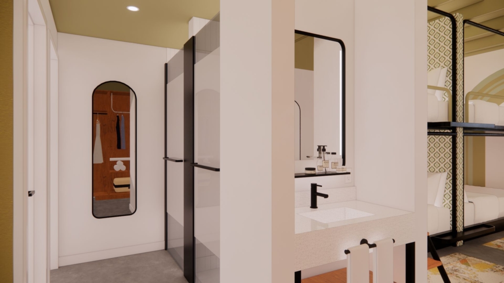You won’t find another room like this is the city! This large, open suite as two sets of queen bunks and an additional queen size bed, all with our signature plush bedding. The two walk-in showers with privacy and two wet rooms round out the space. Additional room provisions include a 55″ smart TV, mini-fridge, full length mirror, coffee station, complimentary Wi-Fi, and premium bath amenities. This is the ideal space for large groups of close friends or families, and sleeps up to 10 people.