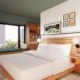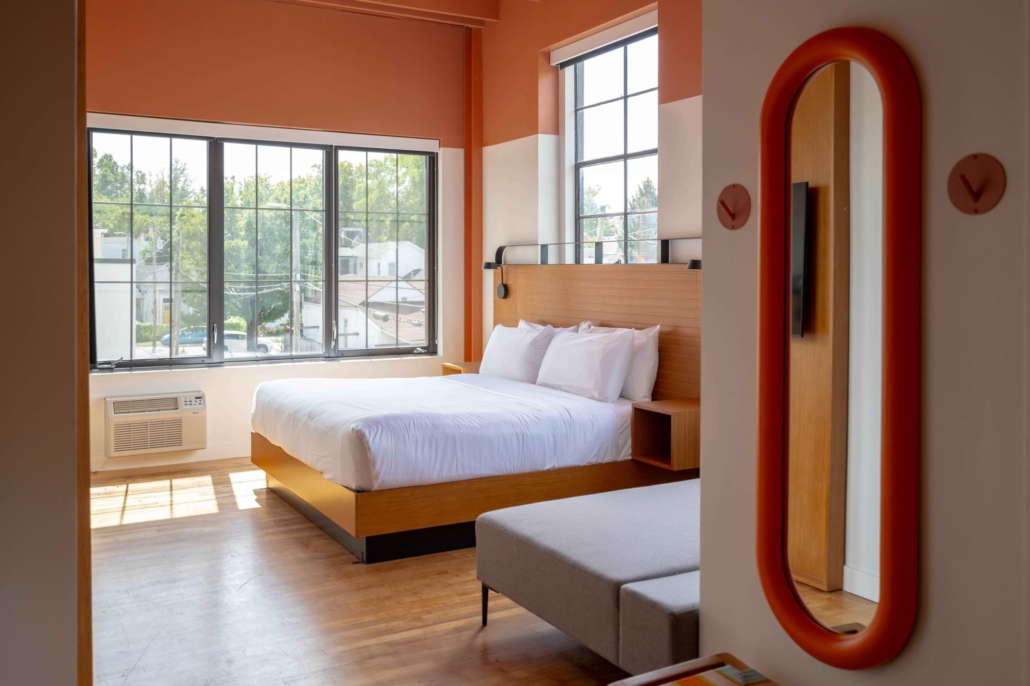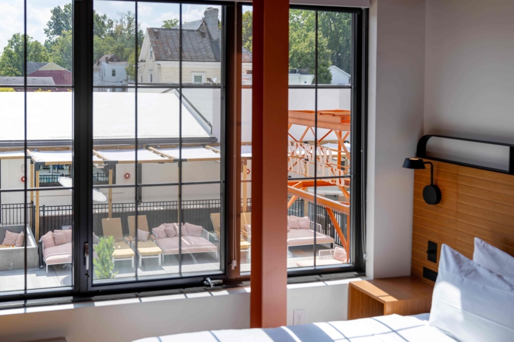 All the conveniences and comforts of our King Room, but with the added bonus of overlooking the outdoor pool through large, wall to wall windows. Each room has our signature plush king size bed, 55″ smart TV, mini-fridge, coffee station, full length mirror, and complimentary Wi-Fi. Bathrooms have walk-in showers and premium bath amenities.