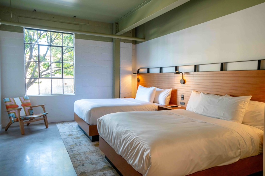 Comfortable, spacious room with two signature plush queen size beds and all the provisions you’ll need for an enjoyable stay. Each room has a 55″ smart TV, mini-fridge, coffee station, full length mirror, and complimentary Wi-Fi. Bathrooms have tub/shower combos and premium bath amenities.