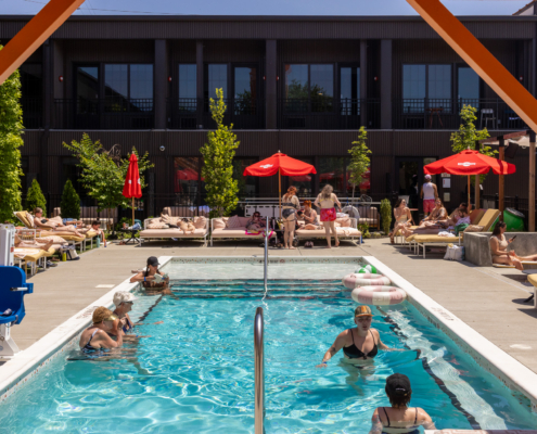 Bringing back the playful days of summer, the Myriad Swim Club is the heartbeat of the hotel. The inviting lounge pool, complete with sun-soaked seating areas, tanning deck, cabanas, and poolside bar, provides guests with the perfect setting to sip, splash, or snooze under the sun.